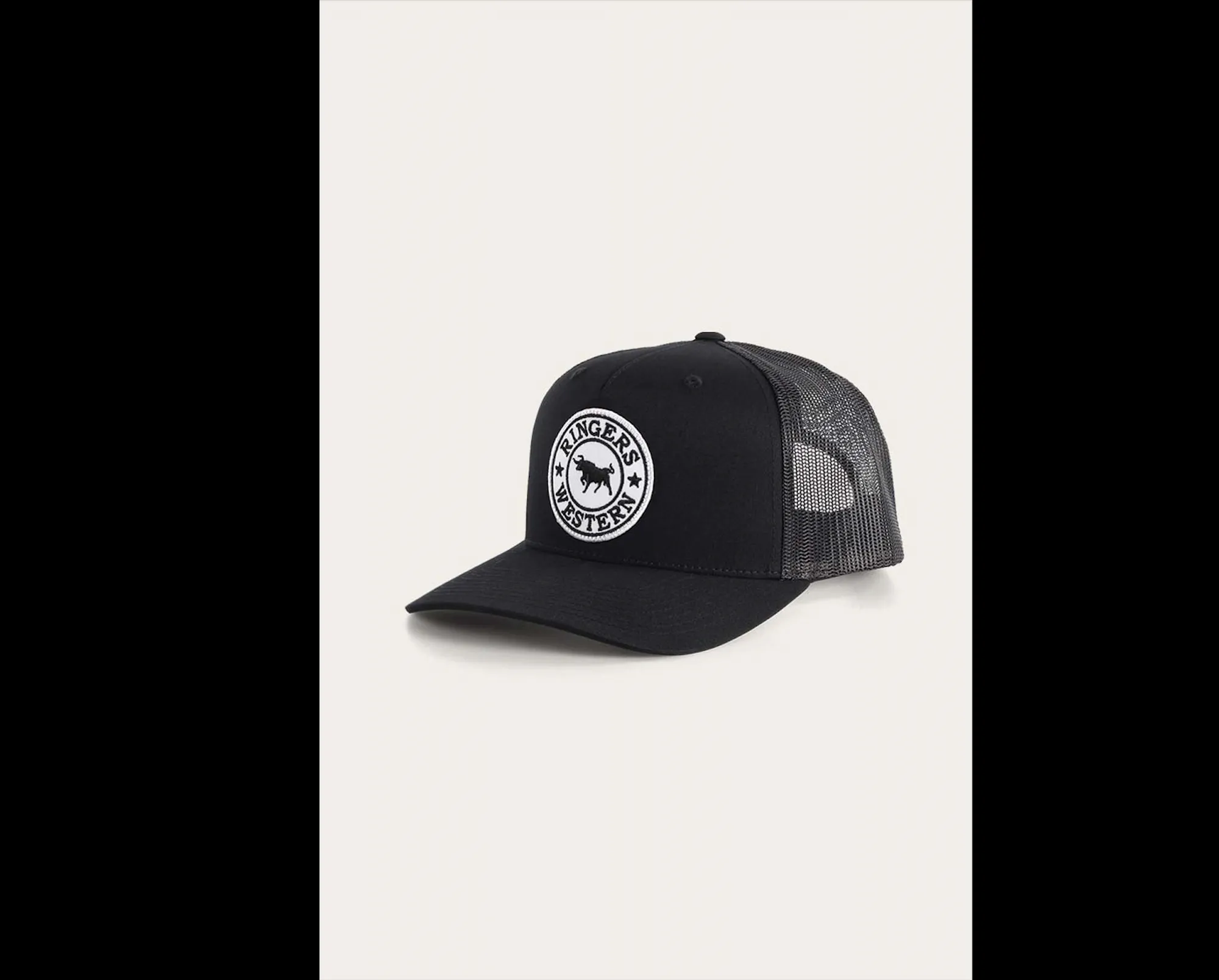 Our Ringers Western trucker caps represent the heart and soul of everything we stand for. This cap has a premium-quality mesh back and metal eyelets for optimal ventilation, ensuring all-day comfort on sun-soaked days. The structured front panel proudly displays our Ringers Western logo, symbolising spirit and tradition. The classic snapback closure offers an adjustable fit for most head sizes. Whether you’re out travelling the open road, attending a local festival, or just representing the brand, our trucker's caps have you covered.