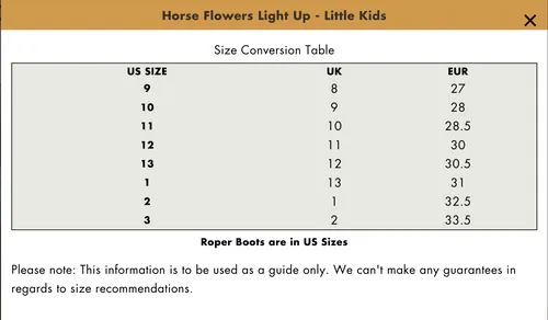 Please Note: The Roper Range of boots are not leather . If you require a heavy duty boot we recommend the Ariat Kids range.