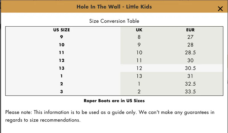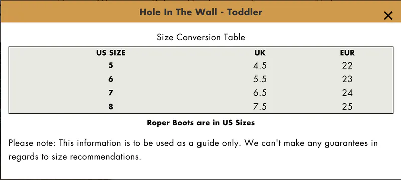 Please Note: The Roper Range of boots are not leather . If you require a heavy duty boot we recommend the Ariat Kids range.