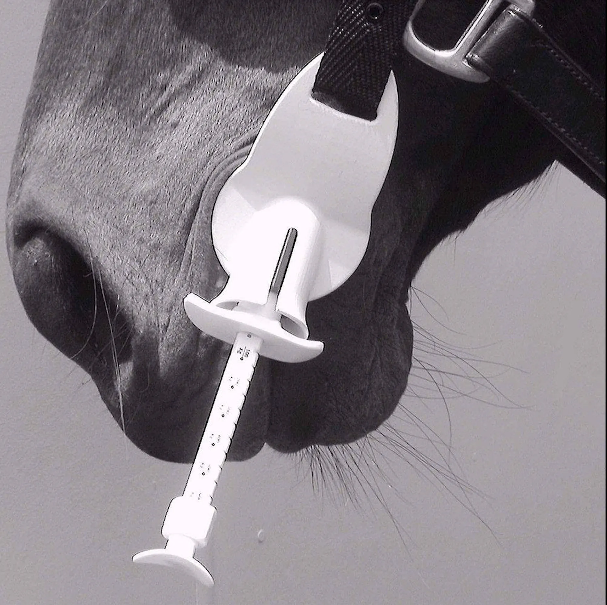 The required worming paste, mineral supplement or other tube-based remedy is firstly fitted into the plastic bit. The bit is then slipped into the horse’s mouth, and the strap placed over the ears where it is pulled up firm. The tube content can then be expelled in a controlled and convenient manner. The paste or remedy is placed correctly on the back of the horse’s tongue where it can not be expelled.