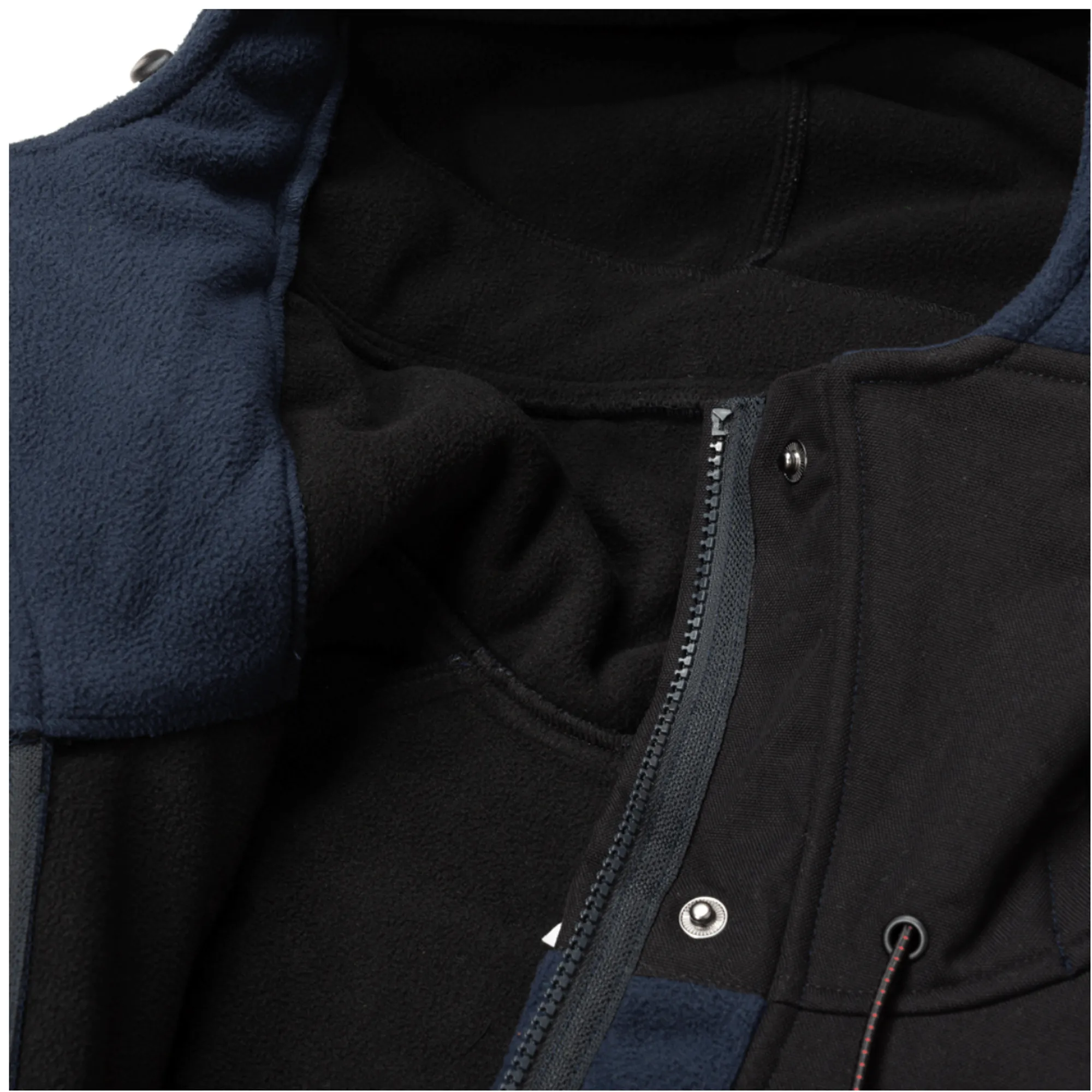 The Station shirt is the perfect winter working jacket. Windproof fleece for comfort in a howling southerly or early mornings on the bike. Reinforced in high wear areas with waterproof nylon. The full zip makes it easy to get on and off over multiple layers.