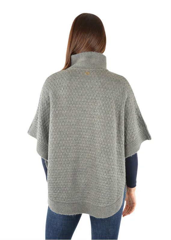 Midweight fully fashioned unique knit poncho, rib collar and hem, front opening with logo buttons, (S-8/10, M-12/14,L-16/18, XL-20/22)