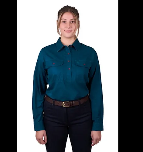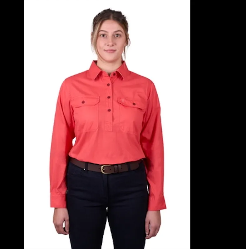 Thomas Cook Light Drill Half Placket Long Sleeve Shirt w Contrast Trims