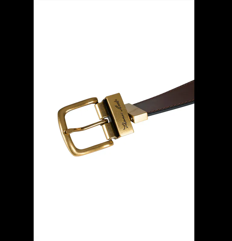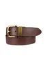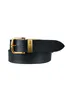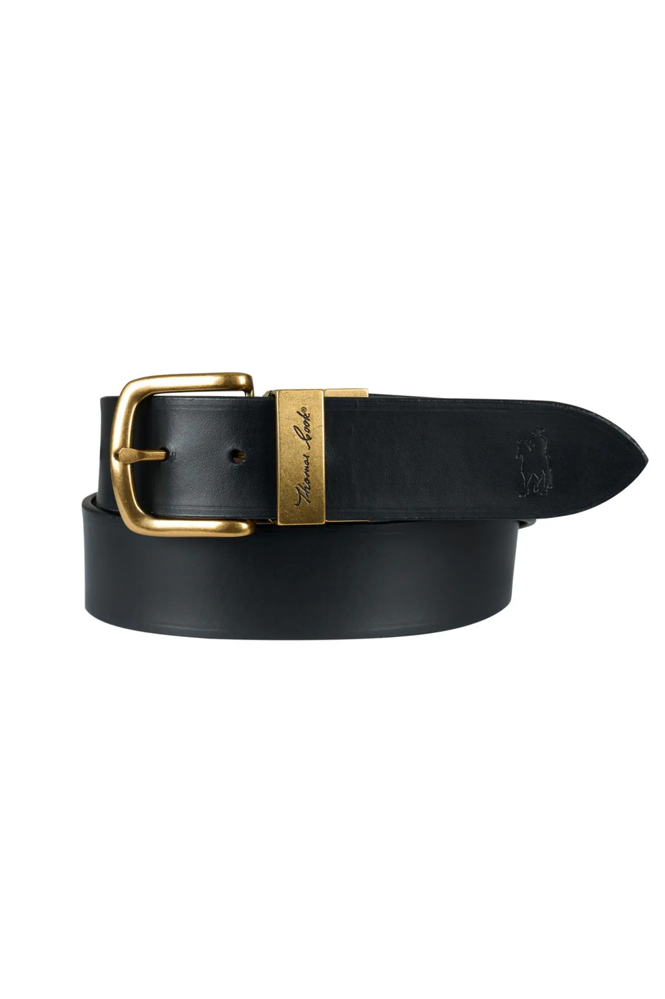 Reversible metal buckle, metal keeper with embossed logo, 38mm (1½") strap width.