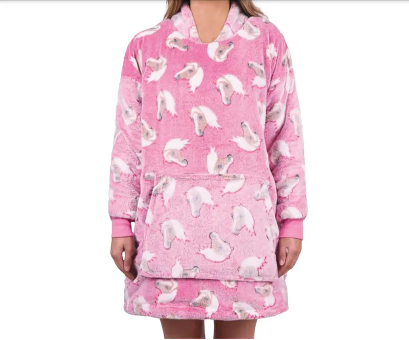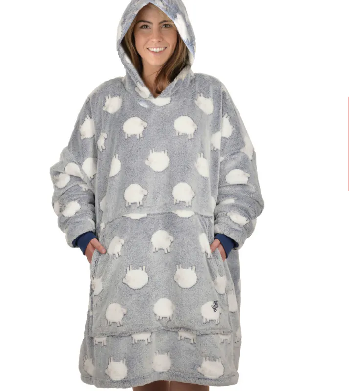 One Size, oversized design, soft plush main fabric, rib sleeve cuffs to keep in warmth, sherpa lining for extra warmth, front pocket and hood