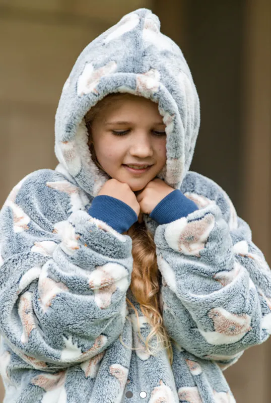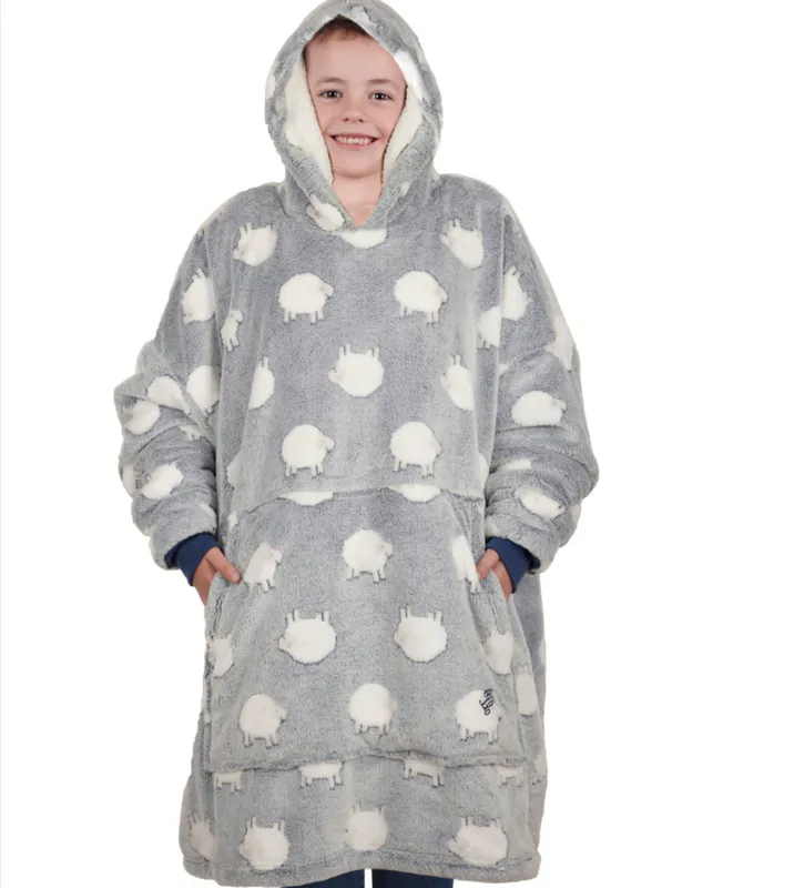 One Size, oversized design, soft plush main fabric, rib sleeve cuffs to keep in warmth, sherpa lining for extra warmth, front pocket and hood