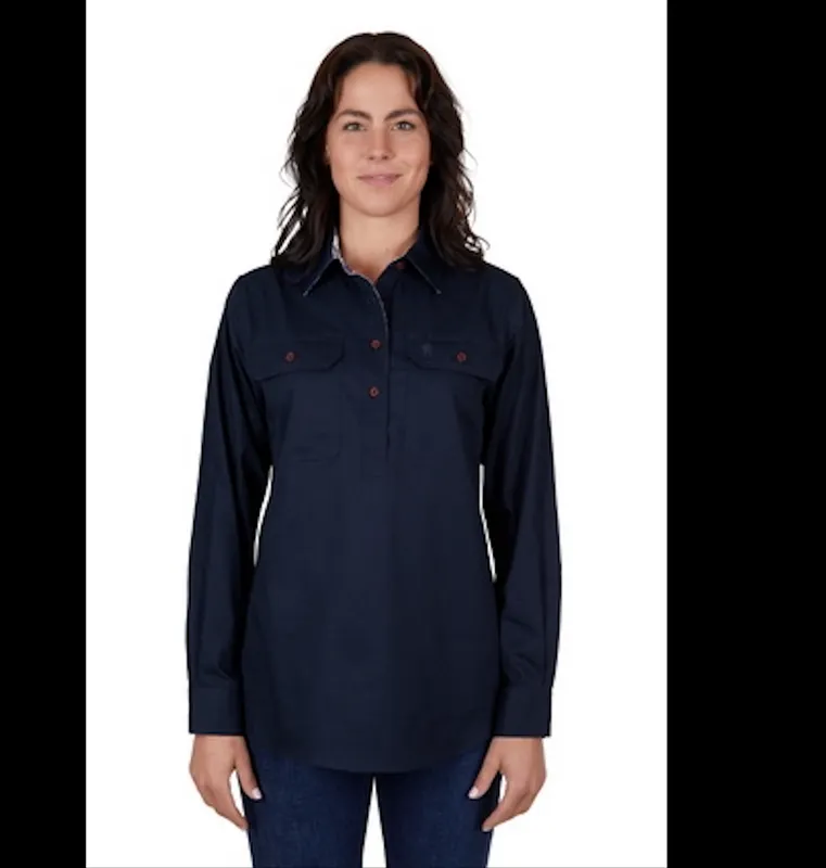 Thomas Cook Women's Light Drill Half Placket L/S Shirt with Contrast Trims