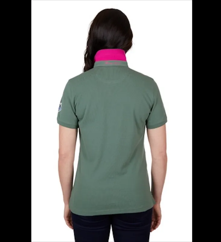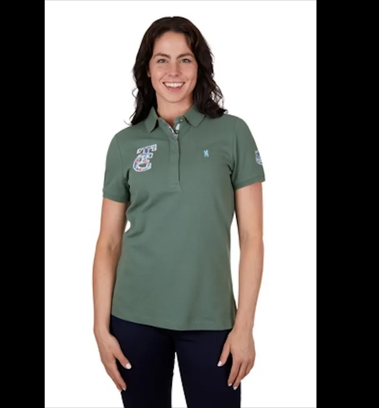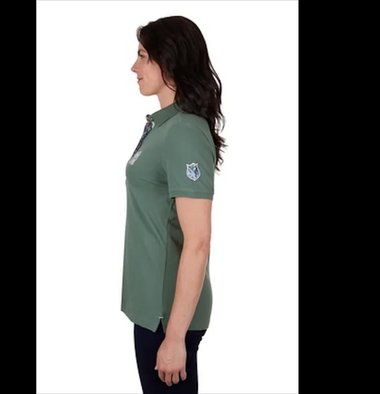 Stretch for comfort and movement, rib collar with contrast under collar, rib cuffs, floral printed trims, contrast stripe taping on inside neck placket and side seam splits, concealed 1/4 placket.