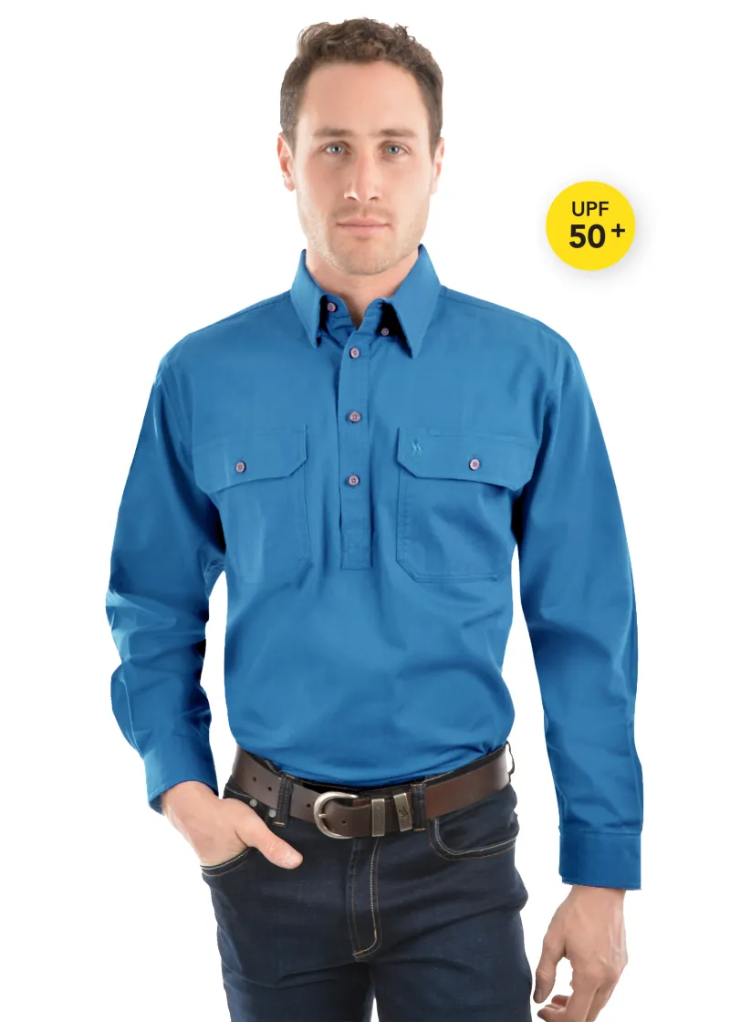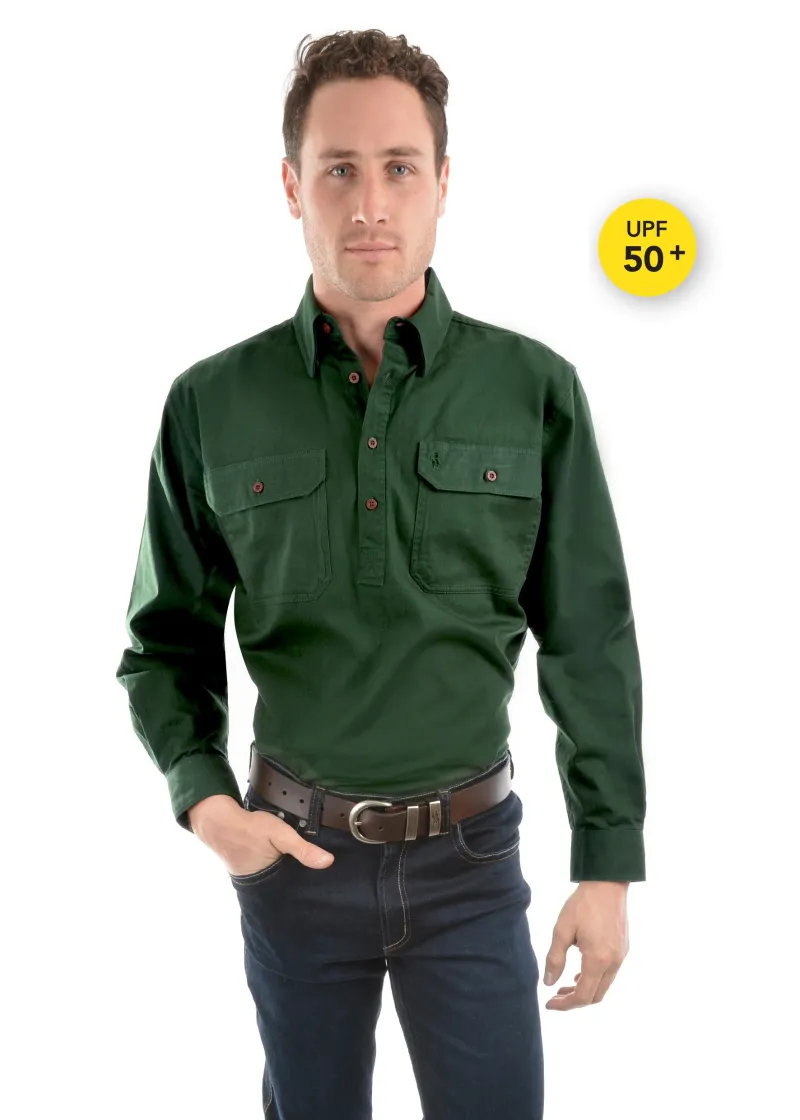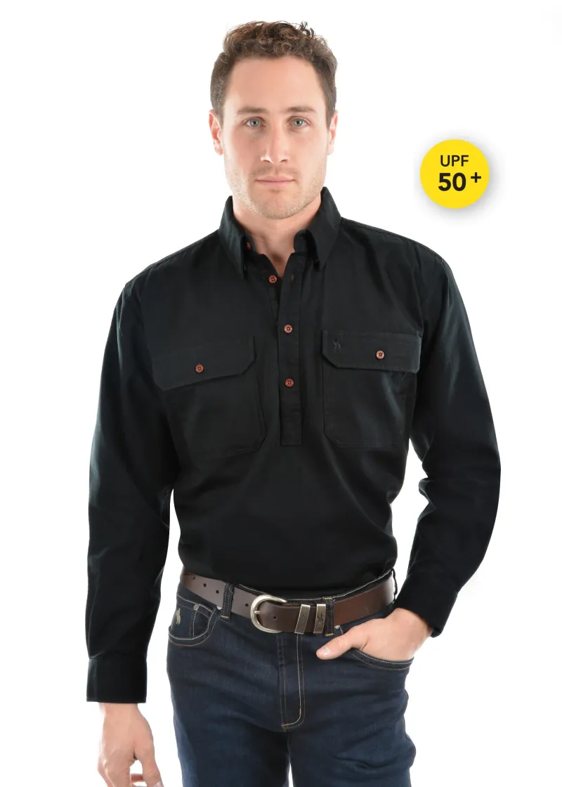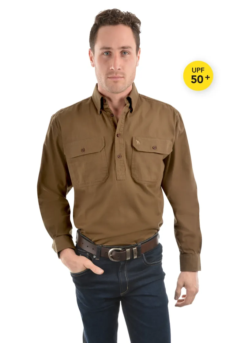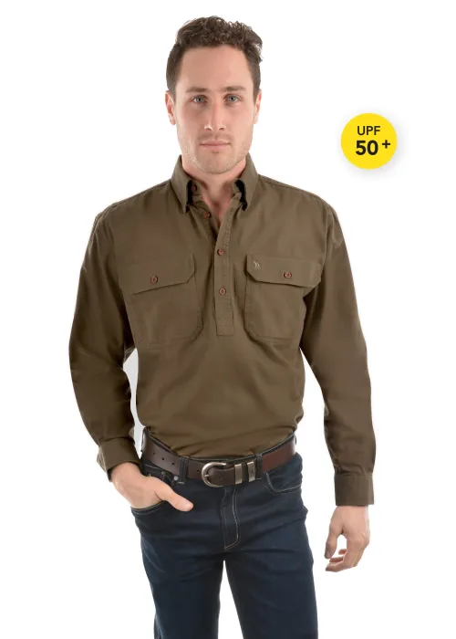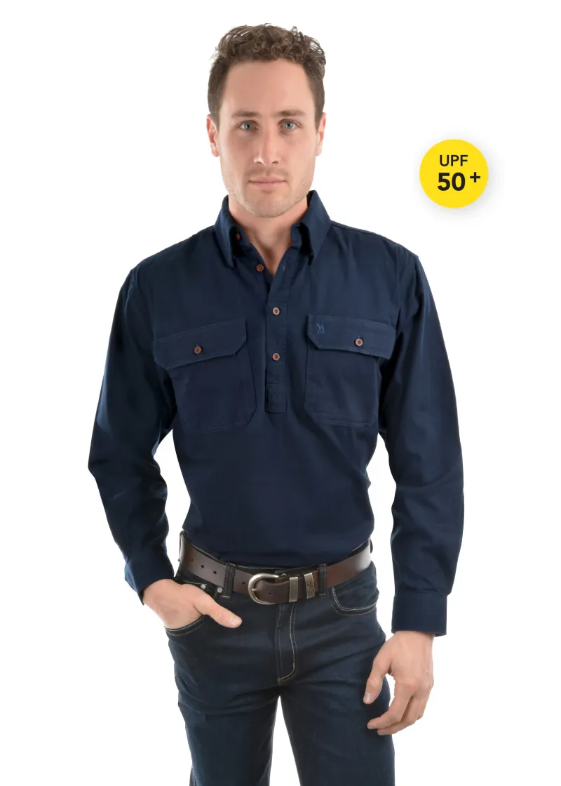 Thomas Cook Mens Heavy Cotton Drill Half Placket Long Sleeve Shirt