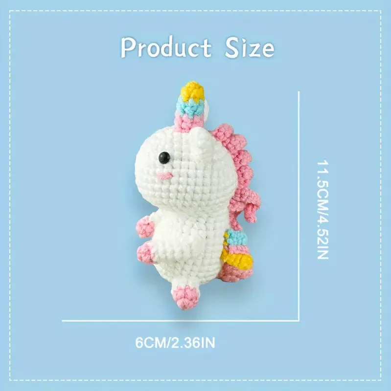Comes with all materials : Crochet hook, Eyes, Needle, Stuffing, Yarn.