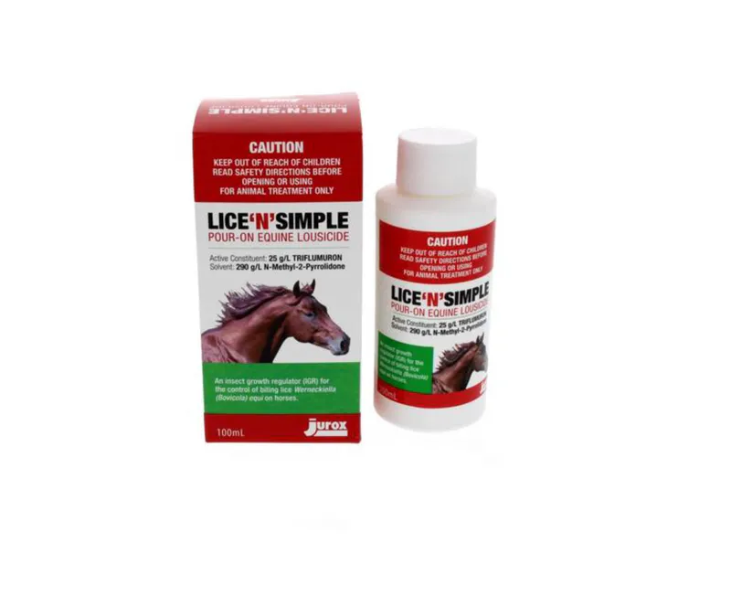 Pour on equine lousicide. A safe effective Insect Growth Regulator (IGR). Breaks the lice life cycle therefore preventing re-infestation.