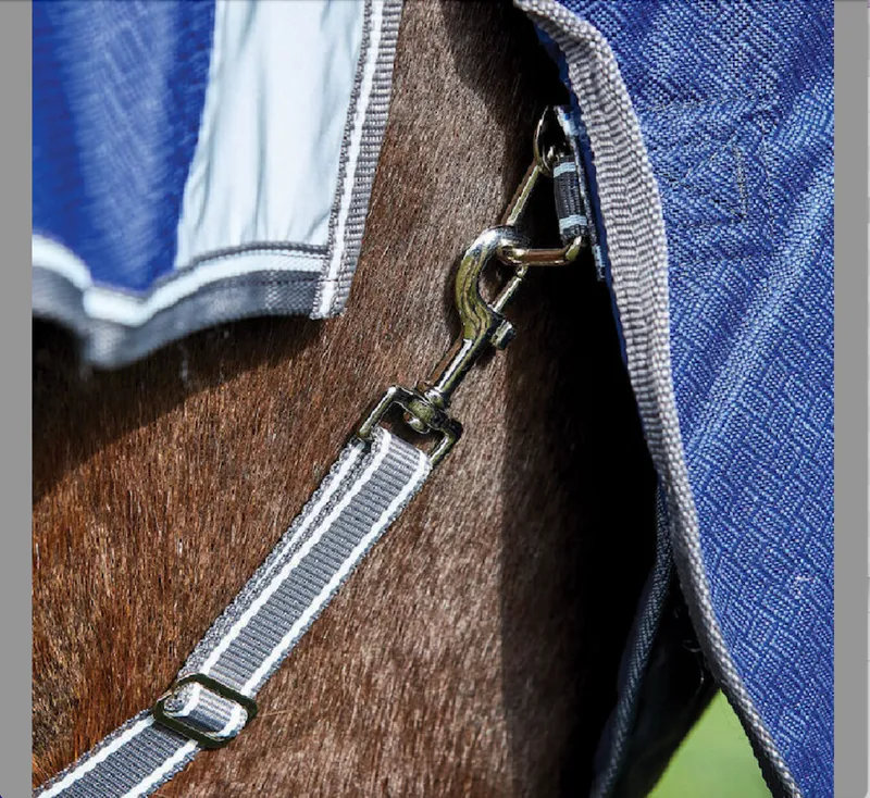 Full wrap tail flap that has a two piece design with reflective insert that wraps around the horse's quarters for maximum protection.