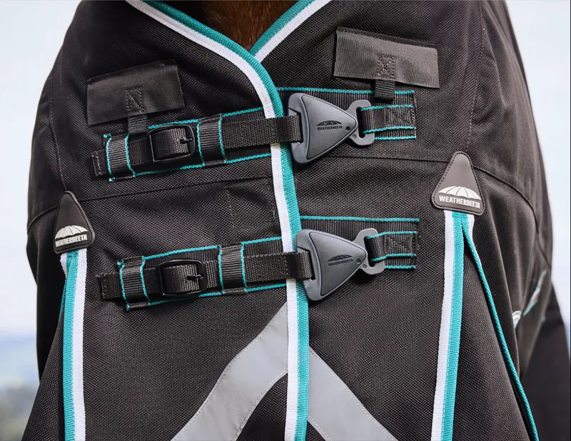 The snuggest rug we've ever made has been upgraded and features the new 'Twist n' Lock closure; an innovative, safety conscious, adjustable and easy to use design. The WeatherBeeta ComFiTec Ultra Comfi Detach-A-Neck turnout rug has an 1800 denier outer shell for the ultimate in strength, with a revolutionary Teflon EcoElite™ coating which is a renewably sourced, plant-based textile repellent that offers waterproofness and breathability alike.