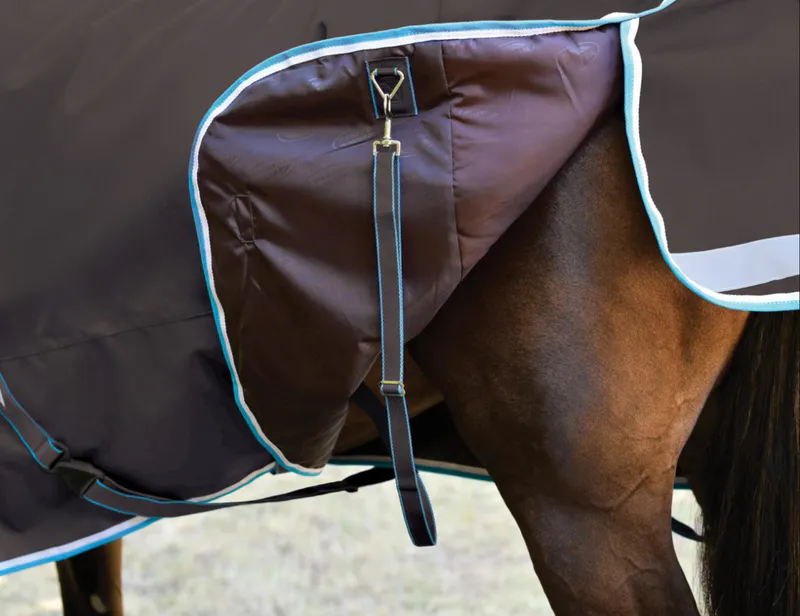 The twin front closure is fully adjustable and includes the Twist n' Lock system and touch tape closures, this closure system also features on the cross surcingles, for additional safety. The Cozi Guard covers the front closure and protects the horse's chest from the elements. With boa fleece at the wither and a memory foam wither relief pad that is crafted for your horse's comfort. It intelligently conforms to their unique shape and effortlessly lifts the rug off the wither, effectively minimising rubbing and delivering unrivalled comfort. The traditional side gussets allow for natural movement. Elasticated, adjustable and removable leg straps offer a more secure fit and a large tail flap with reflective detail enhances visibility and protection.