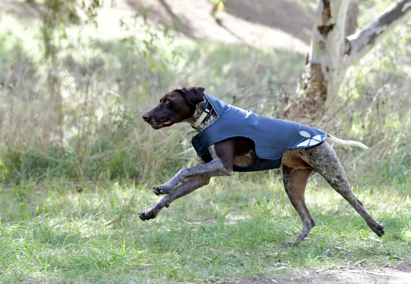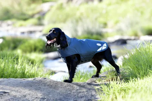 0gm polyfill making it ideal for use in mild conditions. Touch tape belly wrap that is adjustable. Adjustable touch tape front closure. Two way waterproof zipper on back plus harness hole. Collar design includes reflective piping for protection & extra visibility in the dark. Reflective logo & print for visibility in the dark.
