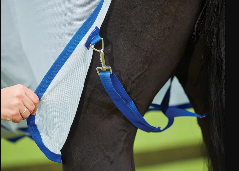 Full wrap tail flap that has a two piece design that wraps around the horse quarters for maximum protection