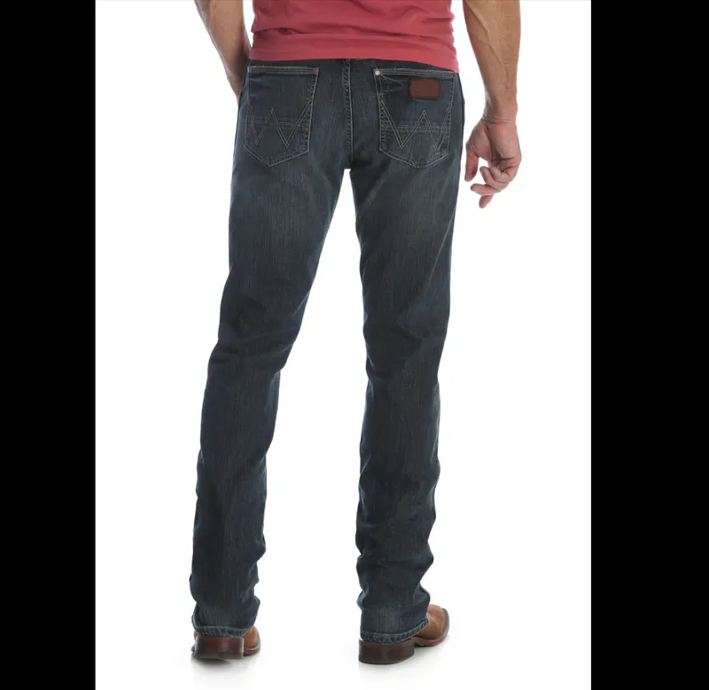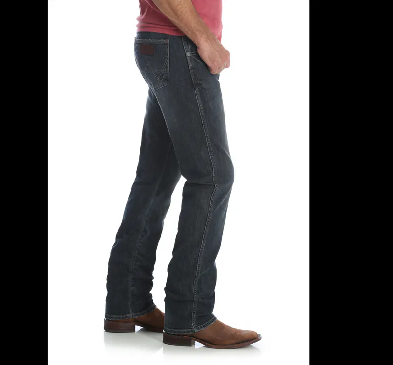 34 Inch Leg, authentic 5 pocket styling, sits lower on waist, slim seat and thigh, fits over boots.