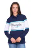 Heavyweight jersey knit rugby, concealed buttons on centre front placket, cotton drill collar, Wrangler® iconic logo herringbone tape on back neck and inside side seam splits, rib trim cuffs, back neck logo embroidery, front feature logo embroidery and print