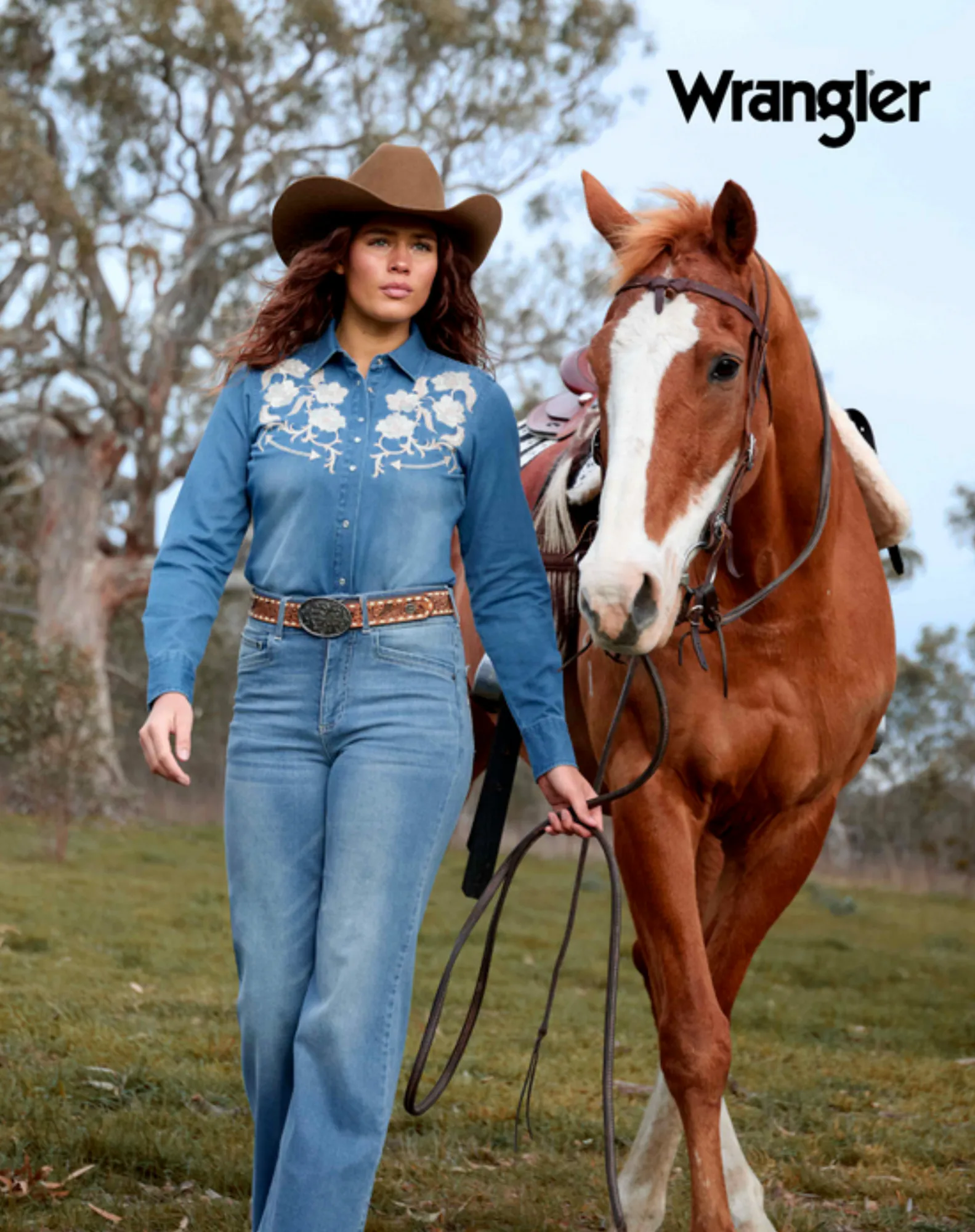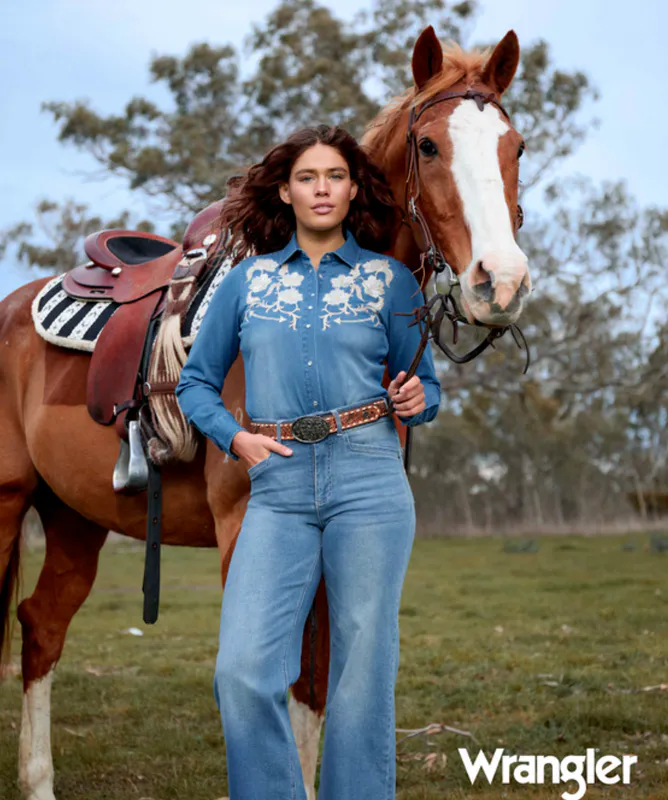 The Wrangler Chloe High Rise Jeans offer a flattering fit with classic five-pocket styling and a modern wide-leg cut for effortless everyday style.