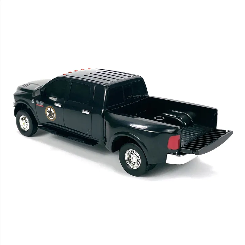 This 1:20 scale replica of Kayce Dutton's Ram(R) 3500 Mega Cab Dually comes complete with a working tailgate and a peg-and-hole hitch that connects with our full line of farm and ranch trailers. Made from our proprietary blend of plastic that creates durable and lifelike toys, and features rubber mirrors to prevent them from breaking.