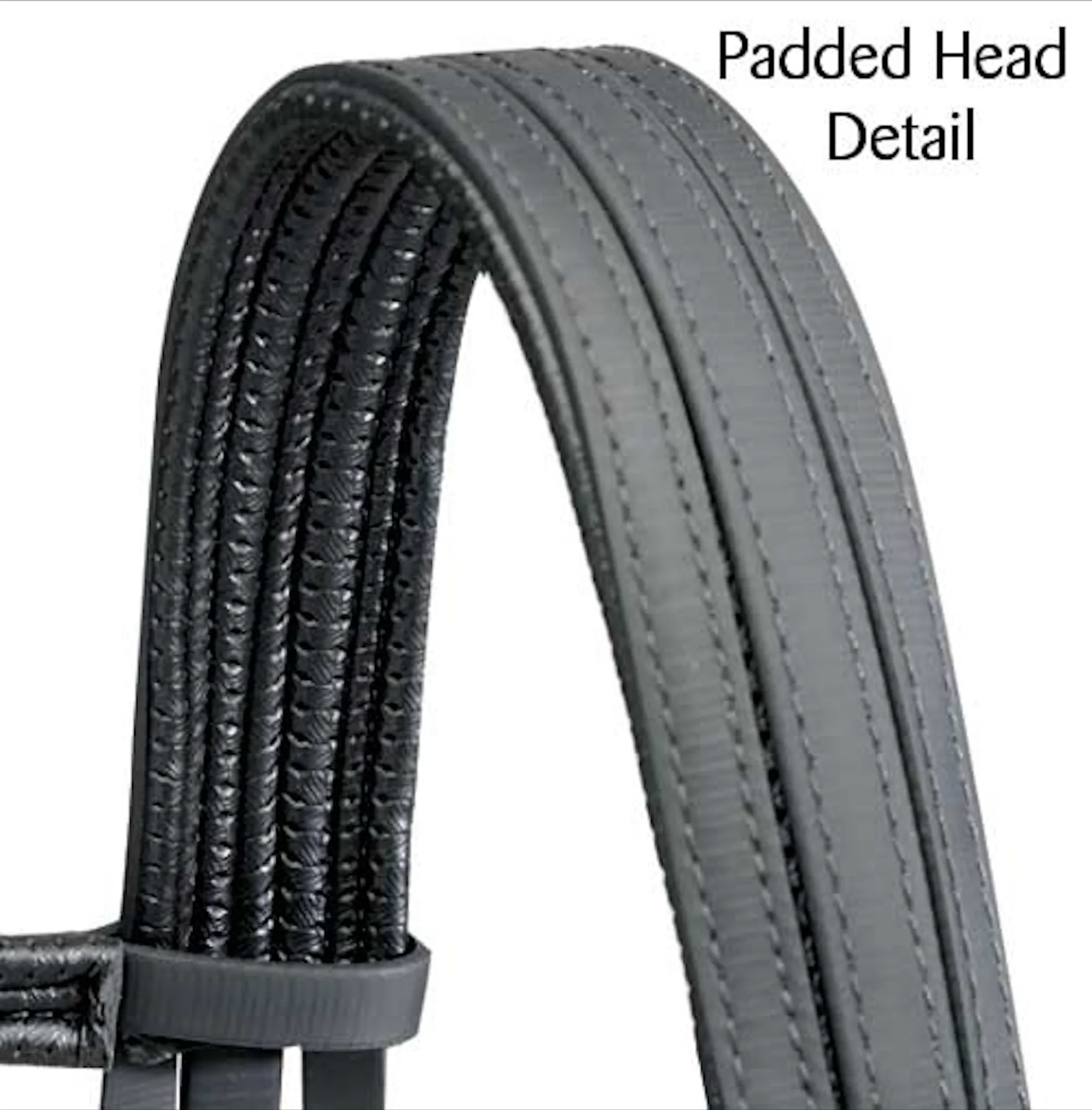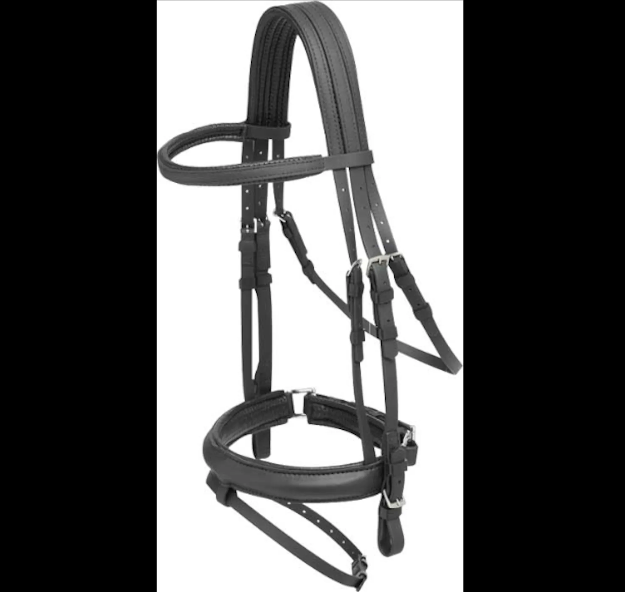 The Dressage bridle has an extra wide padded head and crank style hanoverian noseband. Reins are not included.