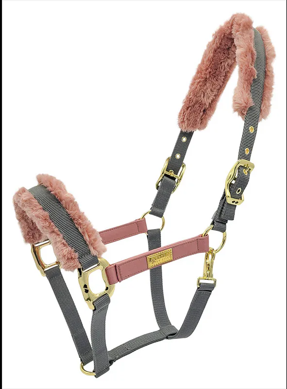 Lined on the head and nose with luxuriously soft made fleece containing antibacterial properties. Adjustable on both sides of the head with a side clip alternative. Finished off with gold-coloured hardware.