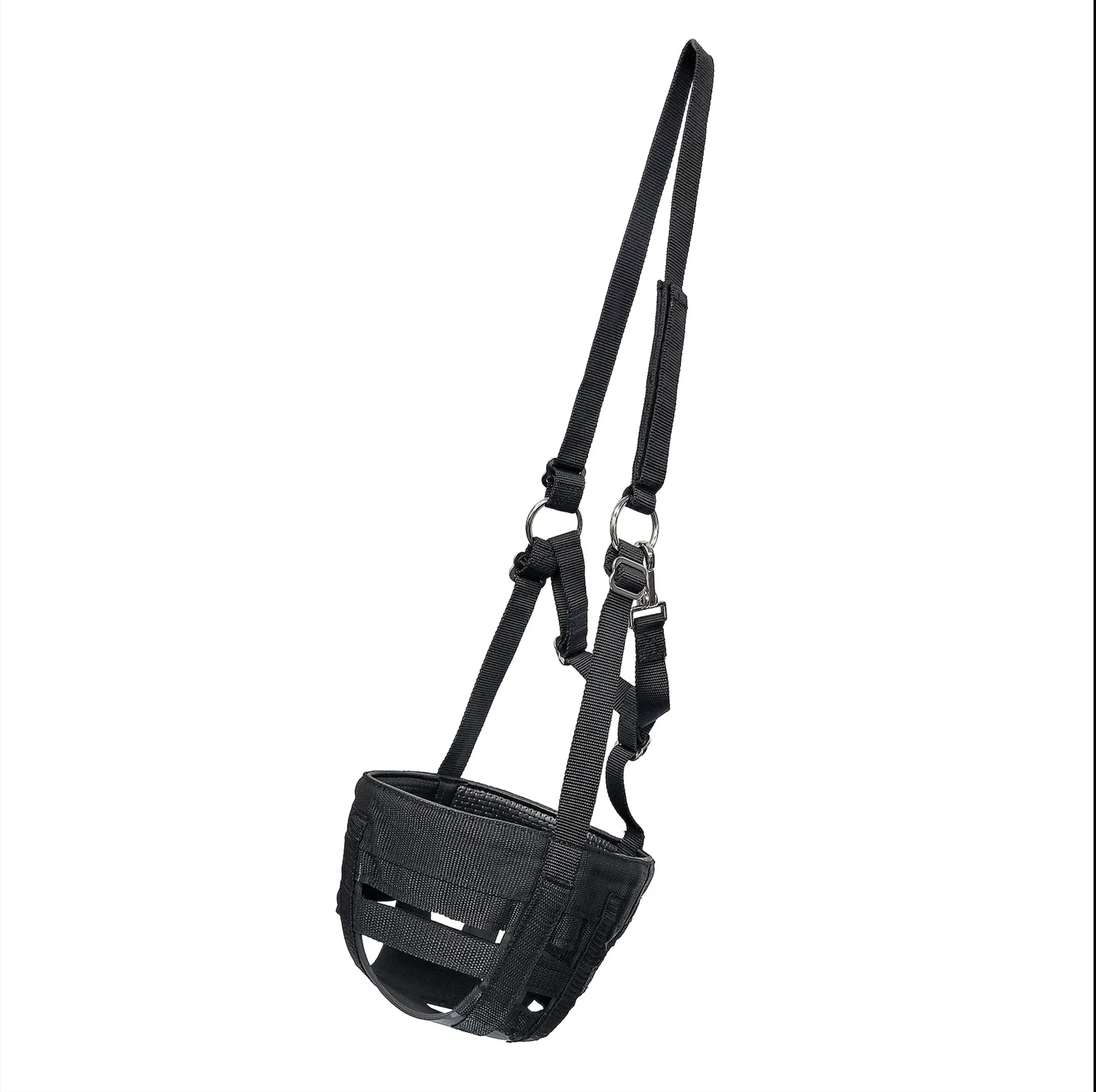 The updated design features enhanced airflow around the nostrils, with an open front configuration that ensures excellent ventilation and comfort during wear. The moulded rubber base curves up around the muzzle, providing generous, unrestrictive space while still controlling intake. A grazing hole at the base allows limited grass access, encouraging natural grazing behaviour without overconsumption.